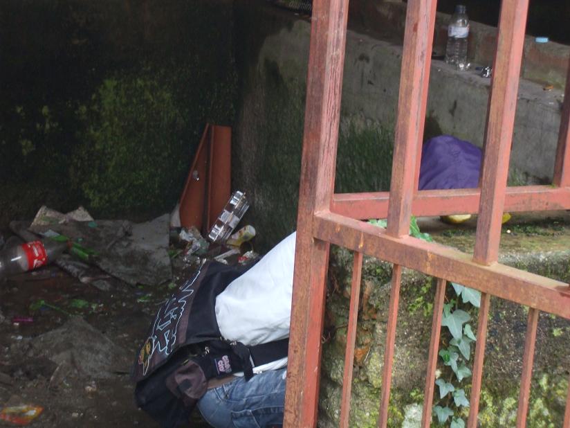 Como a fotografia documenta, até se pode ver um individuo de cócoras a injectar-se, e não faltam lá provas de tais práticas (pratas, isqueiros, seringas e outros materiais do ofício), para atestar esta triste e desgraçada realidade.